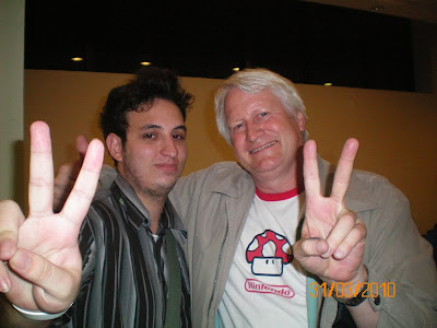 O cara é muito simpático e passou a tarde inteira dos dois dias de evento tirando foto com os fãs e autografando desde o poster disponibilizado pelo evento até coisas trazidas pelos fãs, como Jogos, DSs e Wiis!