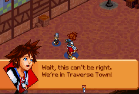 Chegando lá, Sora recebe uma carta que representa Traverse Town, ao "visitá-la" percebe que todos os amigos que havia feito o esqueceram. Mais tarde tudo começa a fazer sentido, aquela não era a Traverse Town verdadeira, mas sim, uma de suas memórias e o resto do jogo mostra ele passando por essas memórias de vários mundos diferentes enquanto ele vaga pelo castelo.