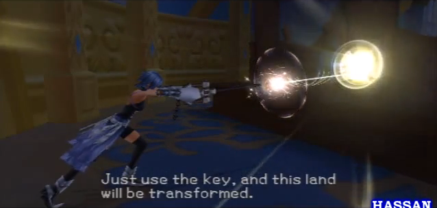 AquaA única que realmente se tornou uma Keyblade Master. Ela tenta corrigir tudo que seus amigos baguçam, de longe é a mais sensata dos três. Seguindo as ordens do Mestre Eraqus, ela fica observando Terra e tenta trazer Ventus de volta para a Land of Departure.