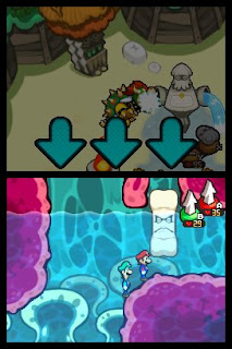 Exemplo, se você se empanturrar de água com Bowser, troque a ação para os heróis na tela de baixo e você estará em uma área submersa.