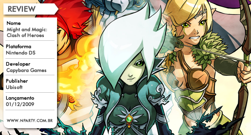Guerreiros, Dragões, Vampiros, Zombies, Mages, Titans, Demons, Imps, Ursos, Entes e muito mais (Uffa xD), fazem parte deste emocionante jogo de estratégia distribuído pela Ubsoft. Clash of Heroes é o mais novo para a plataforma da série Might and Magic. Com seus combates envolventes e um ótimo enredo, o game consegue fazer a cabeça de muitas pessoas independente do gênero.