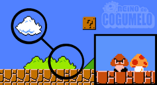 - Já reparou na similaridade das nuvens e arbustos de Super Mario Bros? E do Goomba e Cogumelo. http://j.mp/dzKajs Olha o que a economia faz.