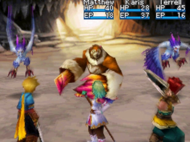 Seu sistema de batalha também era um dos grandes fortes do jogo. Os heróis apareciam em um canto da tela, do lado oposto a onde monstros aleatórios aparecem, parecido com a visão de Pokémon. O jogador deveria então batalhar contra os monstros através de ataques ofensivos, como ataque normal, magias ou invocações de monstros chamados Djinn, além de opções defensivas para uma melhor estratégia no jogo.
