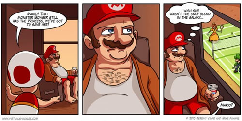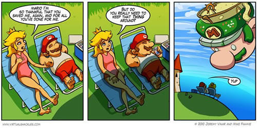 Voce acha que a vida no Reino do Cogumelo é fácil ? Pular na cabeça de tartarugas, comer cogumelos, flores e estrelas brilhantes, cavalgar dinossauros e enfrentar monstros cospidores de fogo para salvar uma princesa pode deixar qualquer um louco...
