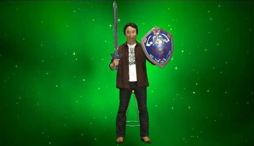 Para iniciar a conferência com uma grande abertura, nada mais justo que trazer ao palco o Mestre Miyamoto, trazendo consigo réplicas da Master Sword e de Hyrule Shield (sim, as mesmas trazidas para a E3 2011) para demonstrar novidades da franquia Zelda.