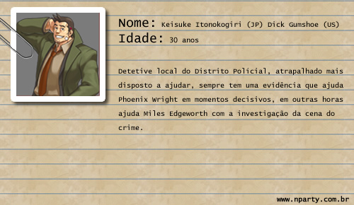 Os personagens principais da trama, ou aqueles que você vai mais encontrar sendo na parte 1 do jogo que é a investigação ou na parte 2 os tribunais são: