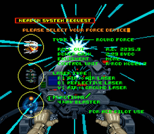 Dentre as armas, além dos cristais de lasers que se combinam a "Força", podemos contar também com Mísseis, "Bit Devices" e "Wave Cannon".