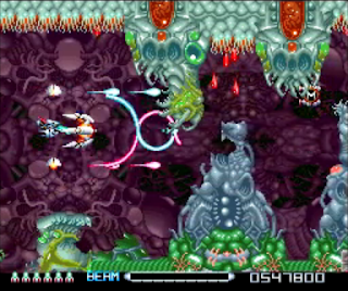 - Vermelho: Laser reverso. Dispara mísseis de lasers para trás, podendo mudar de direção acima ou abaixo da nave, tornando-o uma poderosa arma.