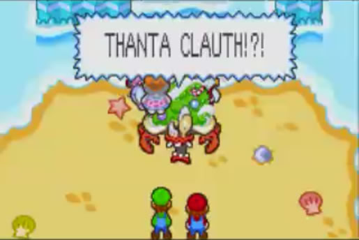 Em Mario & Luigi: Superstar Saga, um caranguejo gigante com uma árvore de Natal decorada em seu casco chamado Hermie III, confunde Mario com Papai Noel.