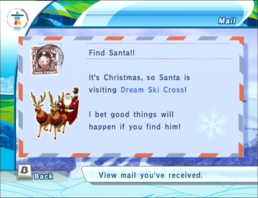 Já para o Nintendo Wii, uma pequena referência ocorre em Super Paper Mario. Pixls são pequenos bixinhos que acompanham Mario. Boomer, um dos diferentes Pixls que Mario encontra no jogo, pergunta a Mario se ele fica acordado durante a noite se perguntando se alguém dá presentes ao Papai Noel.• [WII] Mario and Sonic at the Olympic Winter Games