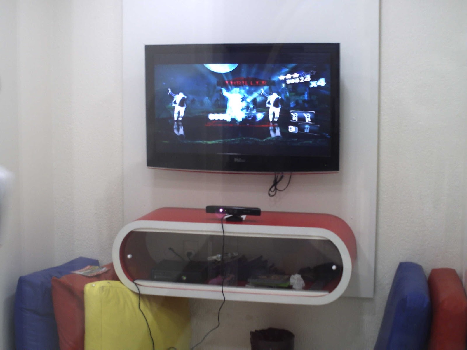 Meio escondido, passando a lanchonete e sem muitas indicações, havia um X-Box 360 com Kinect com Michael Jackson The Experience disponível para jogar.
