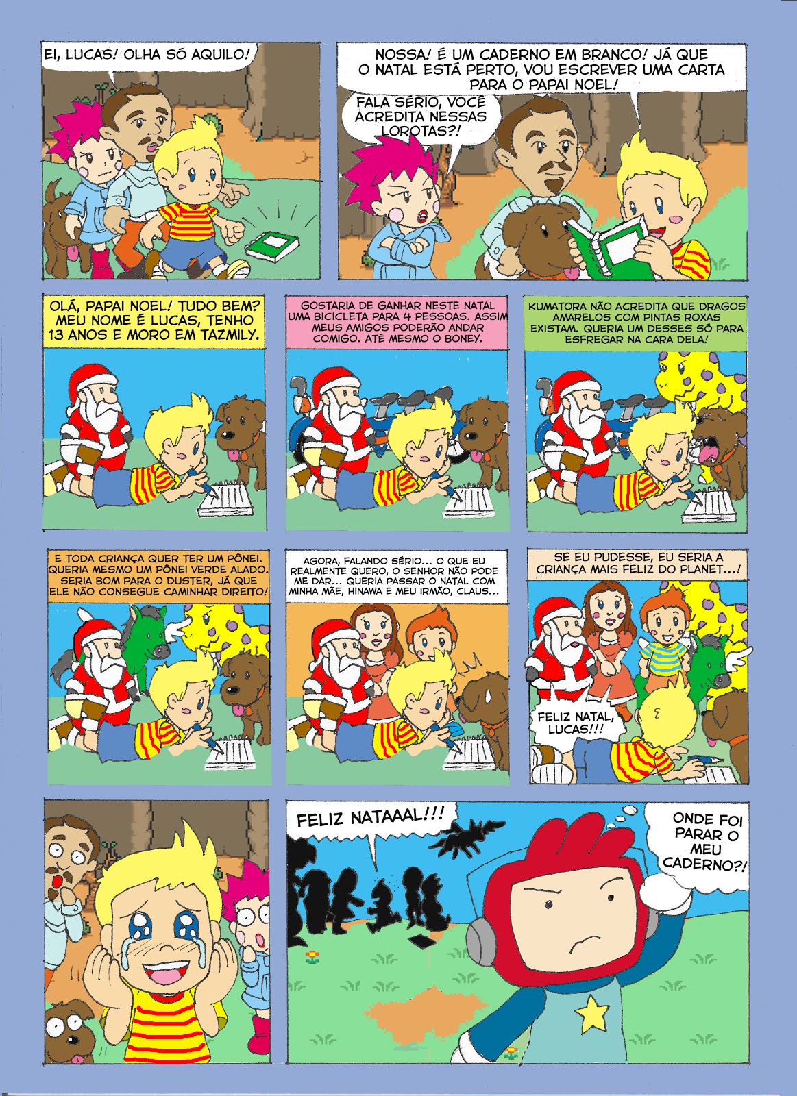 Lucas, o protagonista de Mother 3, encontra um caderno em branco, e resolve escrever uma carta para o bom velhinho. Será que ele vai ganhar seus presentes de Natal? Confiram abaixo!