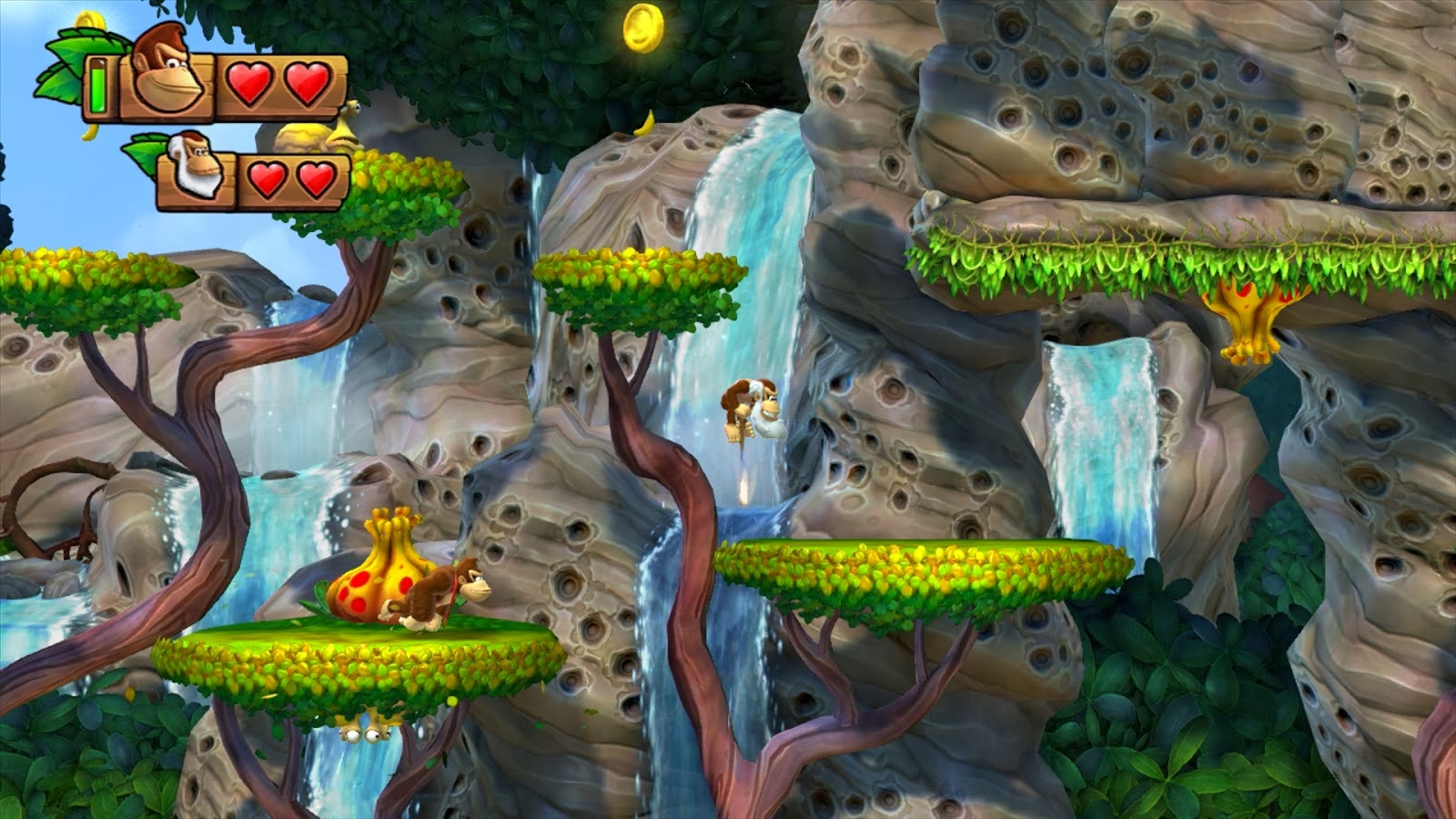 No 3DS isso só acontece se o jogador escolher o Easy Mode, provavelmente em Tropical Freeze será o mesmo esquema. No Classic Mode não existem essas regalias e o jogo acontece com as mesmas regras de Returns.