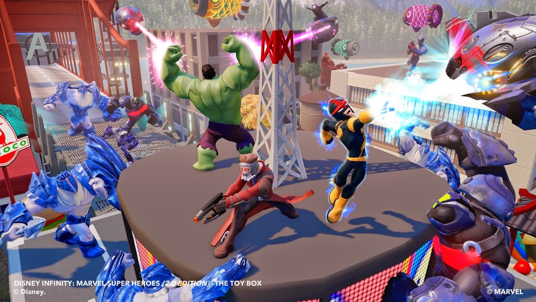 O set de Os Guardiões da Galáxia Play, que inclui Star-Lord e seus companheiros Guardiões como eles chegam a Knowhere, eles acabaram de roubar um objeto cósmico poderoso do Ronan vilão o Acusador. Os jogadores irão guiar a equipe enquanto competem para proteger Knowhere de Ronan e sua frota Sakaaran , mantendo seu item recém "libertado" a salvo das garras do vilão.Star-Lord, Rocket Raccoon, Drax, Gamora e Groot,junto com personagens de Homem de Ferro (de Os Vingadores Play Set) e Nova (de Spider-Man Play Set) serão jogáveis. Aparentemente estes personagens também serão jogáveis na Toy Box . Os Desenvolvedor da Avalanche Software comentam mais a respeito: