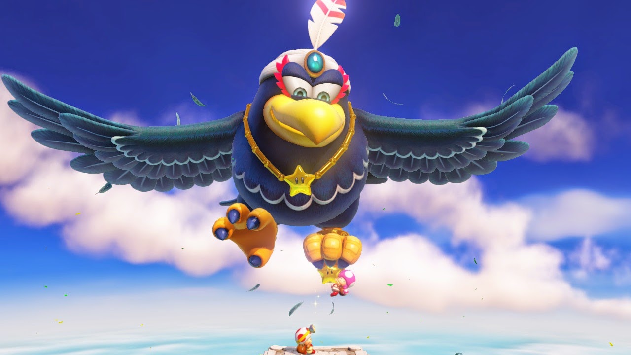 "O intrépido capitão Toad embarca em sua própria aventura pela primeira vez através de uma ampla variedade de complicadas, infestadas de inimigos, cheias de labirintos, fases para encontrar jóias escondidas e douradas estrelas especiais".