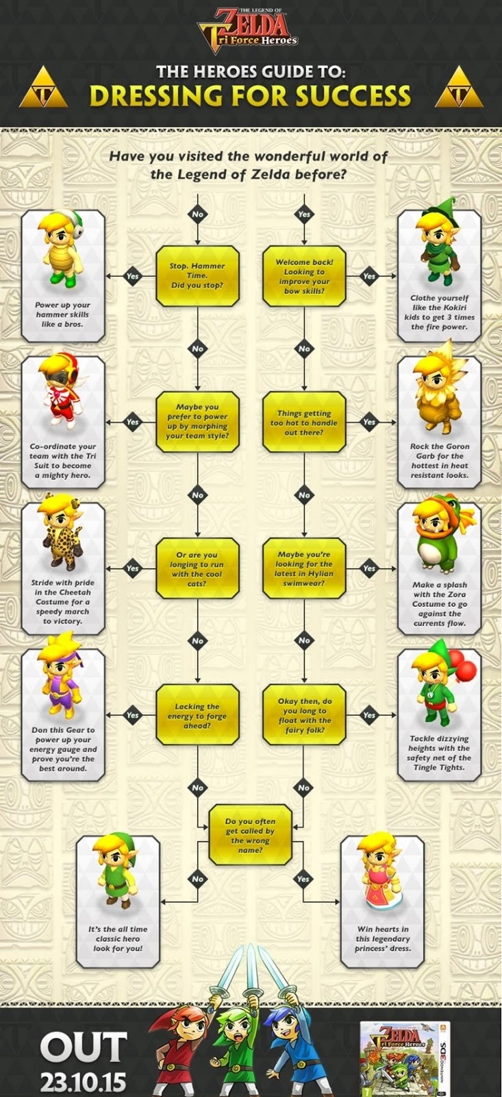 Este infográfico pode te ajudar a se vestir em Zelda: Tri Force Heroes