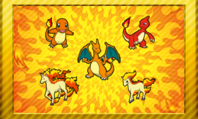 - Charizard Appears: Charmander, Charmeleon, Charizard, Ponyta e Rapidash;