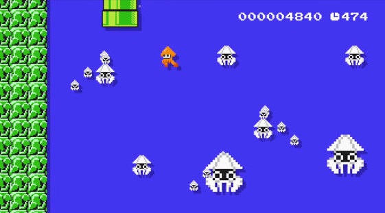 Splatoon conquistou um número enorme de fãs, e recebeu a devida atenção em Super Mario Maker. As três skins dedicadas aos amiibos da série (Inkling Girl, Boy e Squid) não só têm vários sons e poses específicas como também são figuras mutáveis: quando em forma de Inkling Girl ou Boy, o personagem vira um squid ao entrar na água! São pequenos detalhes que conseguem satisfazer muito.