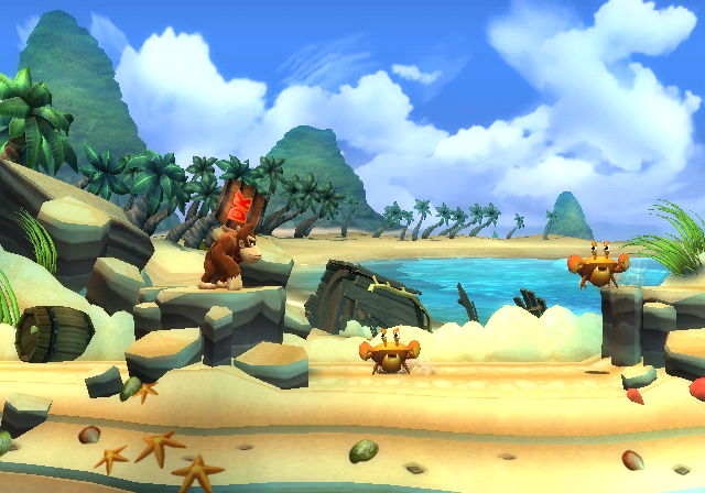 Nosso querido Donkey Kong tem sua casa em uma simpática ilha. Ou não tão simpática, levando em consideração o número de invasores e animais selvagens nela. A praia da ilha é bem extensa e dá um certo trabalho de ser passada. Os tubarões e a lula gigante podem atrapalhar quem queira descansar nela, então talvez essa não seja a melhor opção de férias.