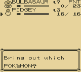Ao sair de casa, fui em direção à unica rota disponível da cidade de Pallet. Nenhum professor precisando de ajuda? Estranho. Continuei andando pela cidade e encontrei o professor Oak's (Professor Carvalho na versão brasileira do anime), que me deu a chance de escolher entre três diferentes Pokémons: Charmander, Squirtle e Bulbasaur. Optei pelo Bulbasaur e meu rival optou pelo Charmander, dando início à primeira batalha do jogo.