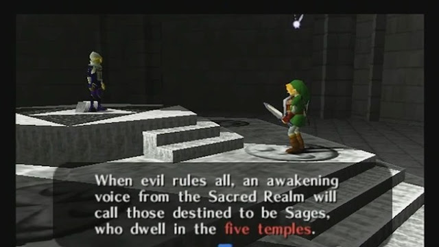 Link encontra Sheik no Temple of Time, que revela ser na verdade a princesa Zelda. Após a revelação, ela é capturada por Ganondorf e levada para o castelo do vilão.