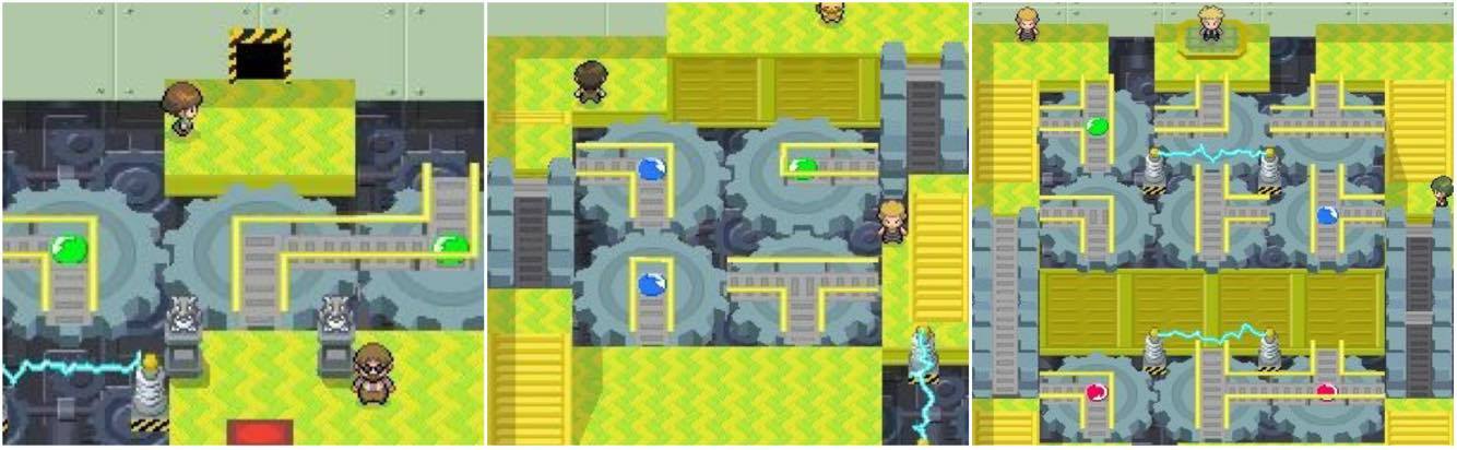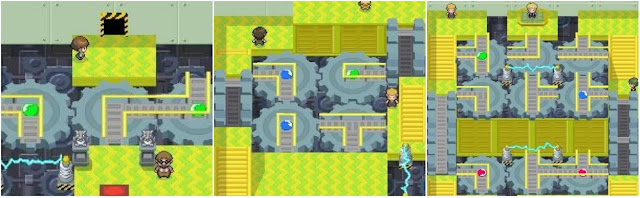 Até que faz bastante sentido ter catracas em um ginásio Pokémon. O problema é que essas catracas têm formas diferentes, o que significa que para passar você precisa movê-las de jeitos específicos, sem deixar que você mova um braço da catraca enquanto o outro lado continua bloqueando a passagem.