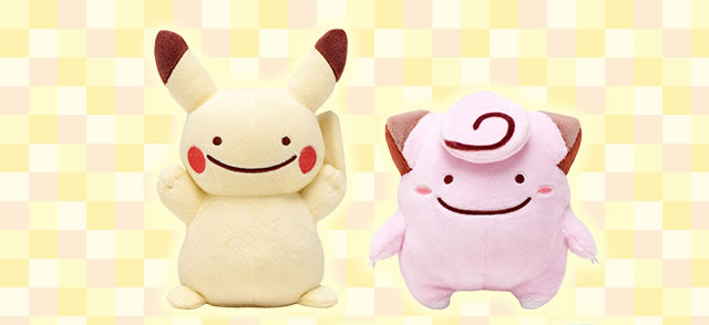 A referência é exclusivamente do anime, quando Ditto se transforma em um Pokémon mas ainda permanece com sua cara clássica. As pelúcias de Pikachu, Clefairy e os iniciais canto custarão 1200 yen (algo em torno de R$ 35) e serão lançadas no dia 16 de março.