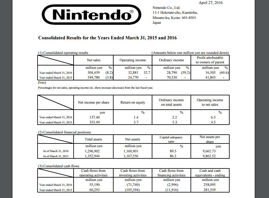 Em 2015, o valor final arrecadado foi de 41,8 bilhões de ienes, o que significa que os números de 2016 caíram para 16,5 bilhões (algo em torno de 150 milhões de dólares na cotação atual). Mas fique registrado que a Nintendo já esperava essa queda, sendo que a expectativa da companhia era de arrecadar 17 bilhões de ienes neste período.
