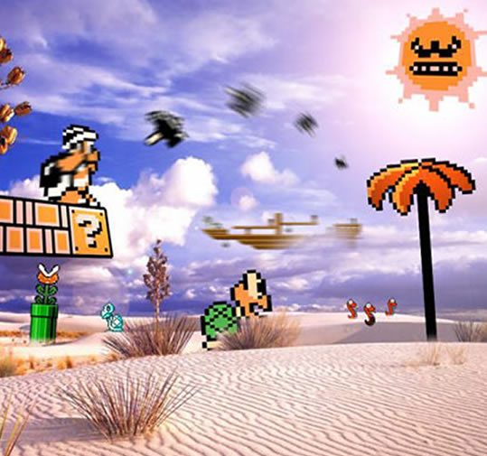 Por mais irreal que um sprite 2D de um personagem pareça, você já se perguntou como ele ficaria em um ambiente real? Para responder esta pergunta, diversos artistas produziram imagens que mostram personagens de video-game em lugares distintos no mundo real.