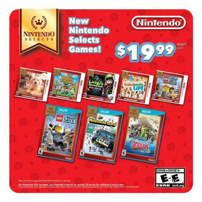 Para comemorar a volta as aulas nos EUA, a Nintendo divulgou a inserção de novos jogos para a linha Nintendo Selects. Os jogos abaixo com o selo Selects estarão disponíveis nas lojas norte-americanas ao preço sugerido de U$ 19,99 a partir do dia 9 de setembro: