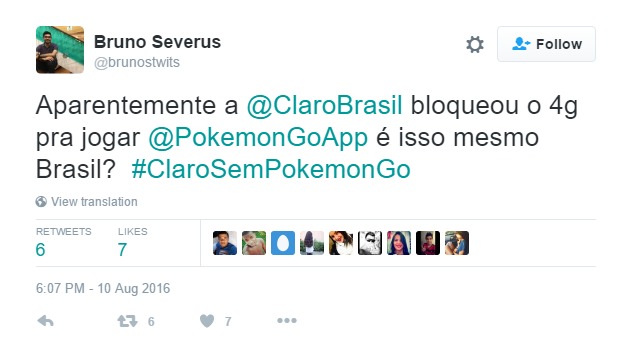 A ausência de posicionamento da Claro fez com que os usuários do app se unissem no Twitter para reclamar criando a hashtag #ClaroSemPokémonGO, que tornou-se um trend topic no twitter.