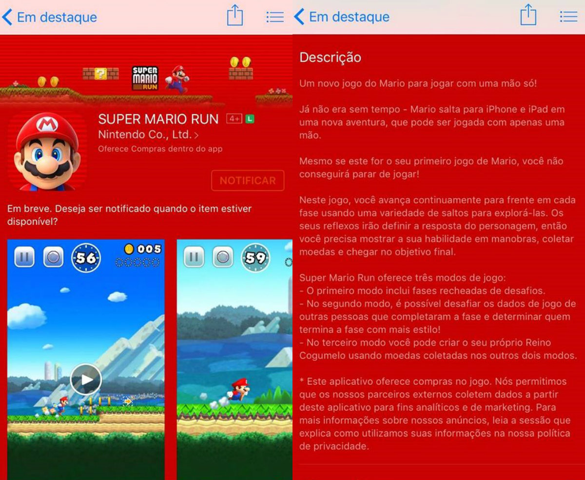 Uma visita à página oficial do jogo na App Store é o suficiente para descobrir em que línguas ele estará disponível. E adivinhem: portugês está confirmadíssimo para o game! No total, Super Mario Run virá em 9 línguas diferentes: inglês, japonês, espanhol, alemão, francês, holandês, italiano, russo e, enfim, português.