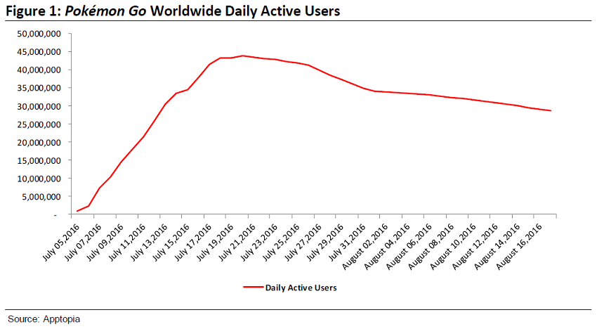 Desde o meio de julho, tem havido uma queda constante no número de usuários ativos de Pokémon GO