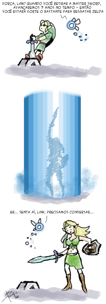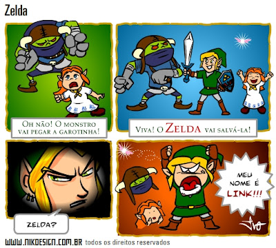 Enfim...Hoje, aproveitando as comemorações de Zelda: Ocarina of Time, por seus 12 anos de vida (Sim! Este jogo já é um pré adolescente no ápice de sua juventude!!!), venho trazer um post especial de humor com justamente com esse tema, porém, focado nas tiras!