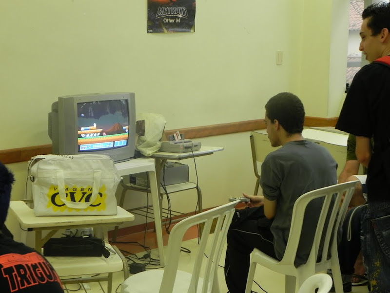 Começamos nosso trabalho cedo, desde sexta feira de manhã, até a noite do domingo. Disponibilizamos jogatinas de Wii, DS e Super Nintendo. Muitas pessoas se interessaram pela nostalgia em jogar games retros, como International Super Star Soccer e Super Mario Bros 3.