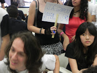 Entre os campeonatos de DS, acho que o que mais se destacou foi o campeonato de Tetris. Como todos ja sabem, o Lobim é o viciado nato do jogo na N-Party, e foi desafiado por participantes de alto nível. Para nossa surpresa, uma participante do campeonato do Anime Friends, a Patrícia (que por um acaso, até trouxe torcida organizada), voltou novamente para encarar o Lobim, o que ocasionou numa feira de discussões, desoganizações e risadas em um dos campeonatos mais malucos que eu ja vi.