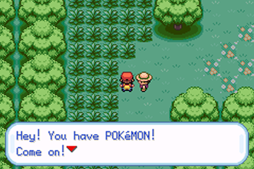 Ok ok, assisto sua aula e continuo rumo a norte, para chegar no primeiro local de treinadores do jogo: Veridian Forest.