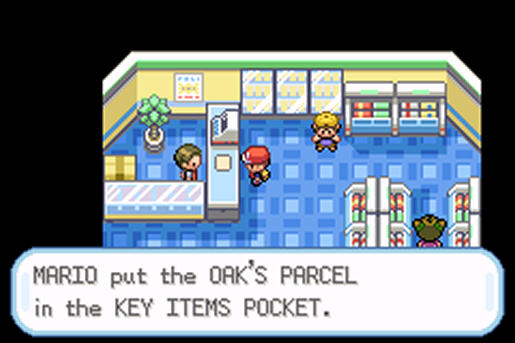 Claro, sabendo o que já ia acontecer, logo que cheguei a Veridian, fui ao Mart, e recebo a encomenda para o Prof. Oak. Então, de cara, rumei de volta a Pallet, para entregar a encomenda para o velhote, e receber em troca a minha Pokedex.