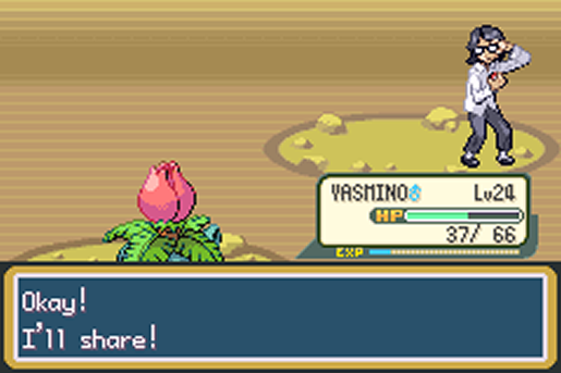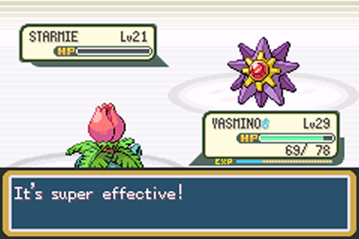 Seu Pidgey havia evoluído, e seu Charmander agora possuía o ataque Ember, me deixando ainda mais em desvantagem. Mas nada que um pouco de Leech Seed aqui e Sleep Powder ali não equilibraram tudo, me permitindo ganhar a batalha.