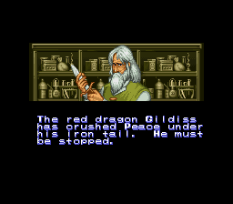 "O dragão vermelho Gildiss ergueu-se após um longo dormindo. O povoado ao norte foi tomado por monstros." (Texto que aparece ao se derrotar o 4º chefe, texto original aqui)