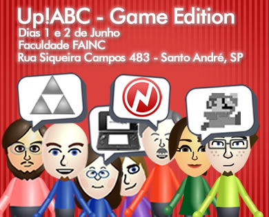 O Up!ABC - Game Edition acontece nos dias 1 e 2 de Junho, na Faculdade FAINC (Rua Siqueira Campos 483 - Centro), Santo André, SP.