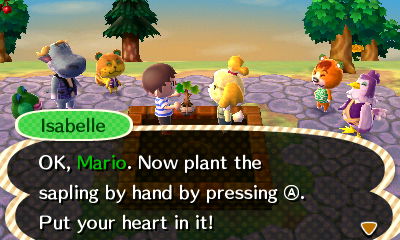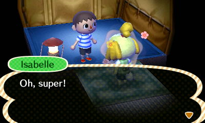 Quando não consegui mais encontrar insetos, frutas, ou vizinhos para fofocar, resolvi trabalhar um pouco nas minhas atividades de prefeito. Foi então que Isabelle me informou que eu deveria retirar a permissão para desenvolvimento da cidade. Tal permissão só me seria dada caso eu tivesse uma casa na cidade, e tivesse 100% de aprovação dos moradores.