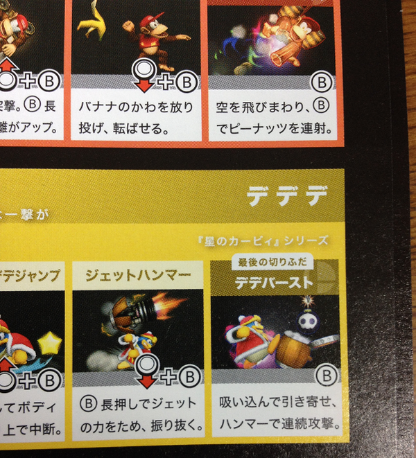 De acordo com o guia promocional de Super Smash Bros. para o 3DS, King Dedede possui um novo Final Smash no jogo. Chamado de "Dede-Burst", o personagem suga seus oponentes para dentro do barril, e inflige dano atacando múltiplas vezes com seu martelo.