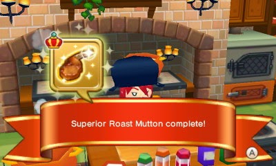 Descobri no jogo que eu tenho o dom de cozinhar. Na verdade, é muito mais fácil o que eu esperava: basta roubar uns ingredientes ali, ganhar umas receitas aqui, e apertar o botão A de várias formas diferentes. Enquanto na vida real eu só sei fazer gelo e ferver salsicha, em Fantasy Life, aprendi a fazer um FUCKING SUPER MEAT OF HELL WITH LASERS em menos de 15 segundos.
