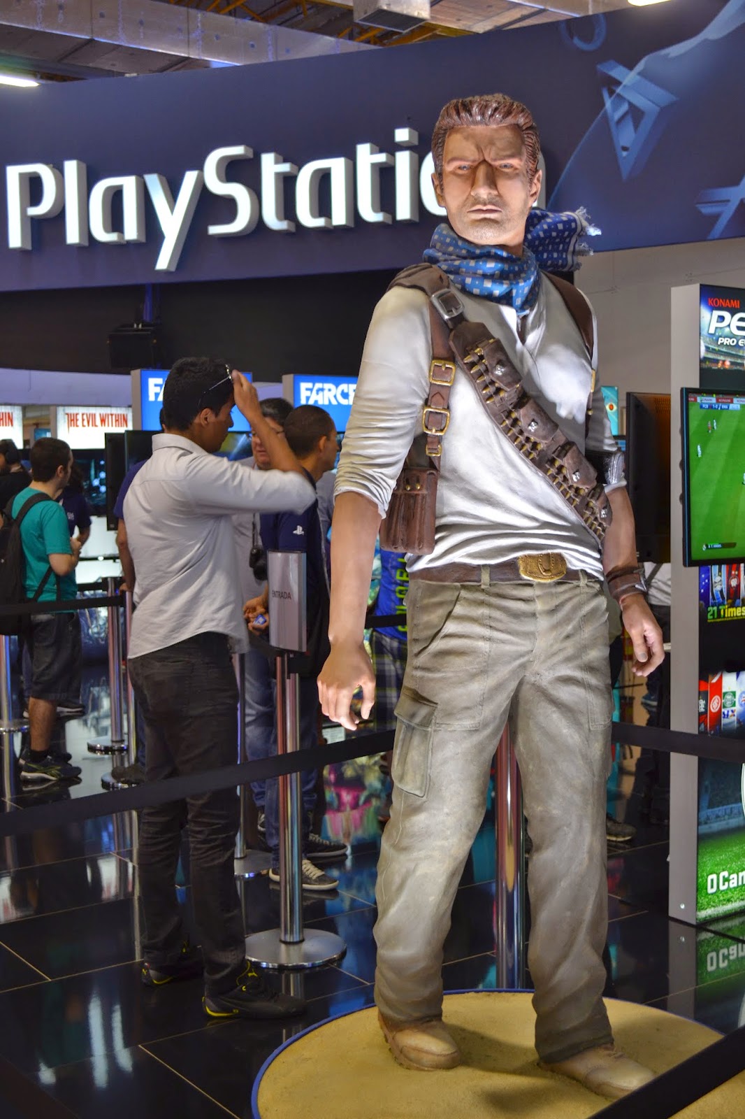 O restante do tempo tirei fotos do evento, no qual estão diversos cosplayers e muitos estandes chamativos, como o da SONY - que conta com uma estátua gigantesca de Kratos, de God of War, e uma de Drake, de Uncharted.