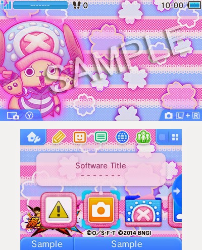 Com a chegada do lançamento de One Piece: Super Grand Battle X para o 3DS, a Nintendo anunciou o lançamento de dois temas para o portátil baseados no jogo. O primeiro mostra toda a tripulação dos Mugiwara com ícones baseados em sua bandeira, enquanto o segundo tema foca apenas em Chopper, deixando os ícones com uma coloração rosa.