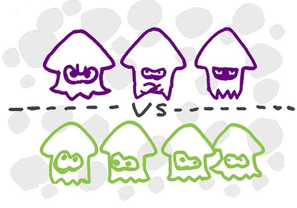 O twitter oficial de Splatoon publicou hoje alguns tweets explicando sobre as novas opções de criação de time que estarão disponíveis após o próximo update. Para esclarecer os detalhes de uma forma bem prática, foram criadas imagens coloridas e intuitivas para explicar sobre as situações que o gerador de times encontrará.