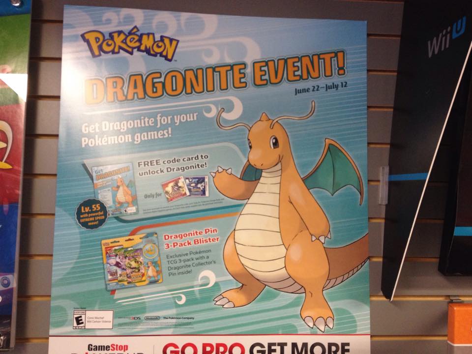 E bom, até o dia 12 de Julho, um Dragonite especial estava sendo distribuído nas lojas Gamestop nos EUA. Bastava pedir um código e um panfleto promocional para um balconista. Hoje em dia no ocidente, esse é, ao lado dos 'Mystery Gifts', o padrão principal de distribuição. Muito diferente dos antigos métodos que utilizavam máquinas ou cartuchos especiais.