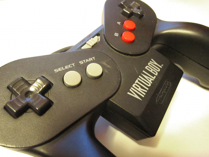 O controle do Virtual Boy era um show a parte! Ele tinha dois direcionais pela necessidade de movimentar a câmera em 3D. Ele deve ter sido algo como um percursor do controle do Nintendo 64.
