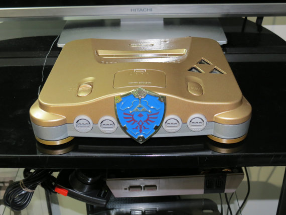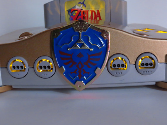 Convenhamos que The Legend of Zelda: Ocarina of Time é um dos melhores jogos do Nintendo 64. E por que não combinar o jogo com um console incrível, totalmente customizado, pintado a ouro e tematizado do jogo?